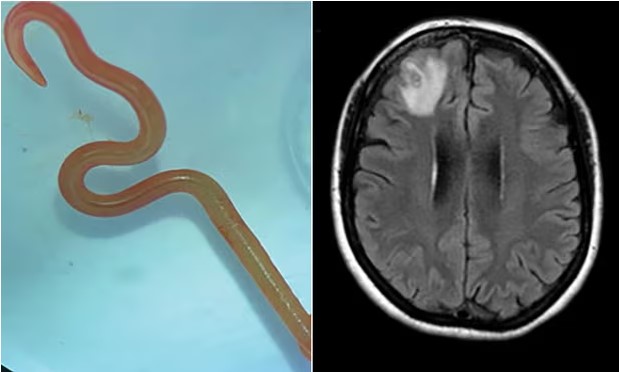 Unutkanlık ve depresyon şikayeti ile hastaneye giden kadının beyninde 8 santim uzunluğunda canlı solucan bulundu.