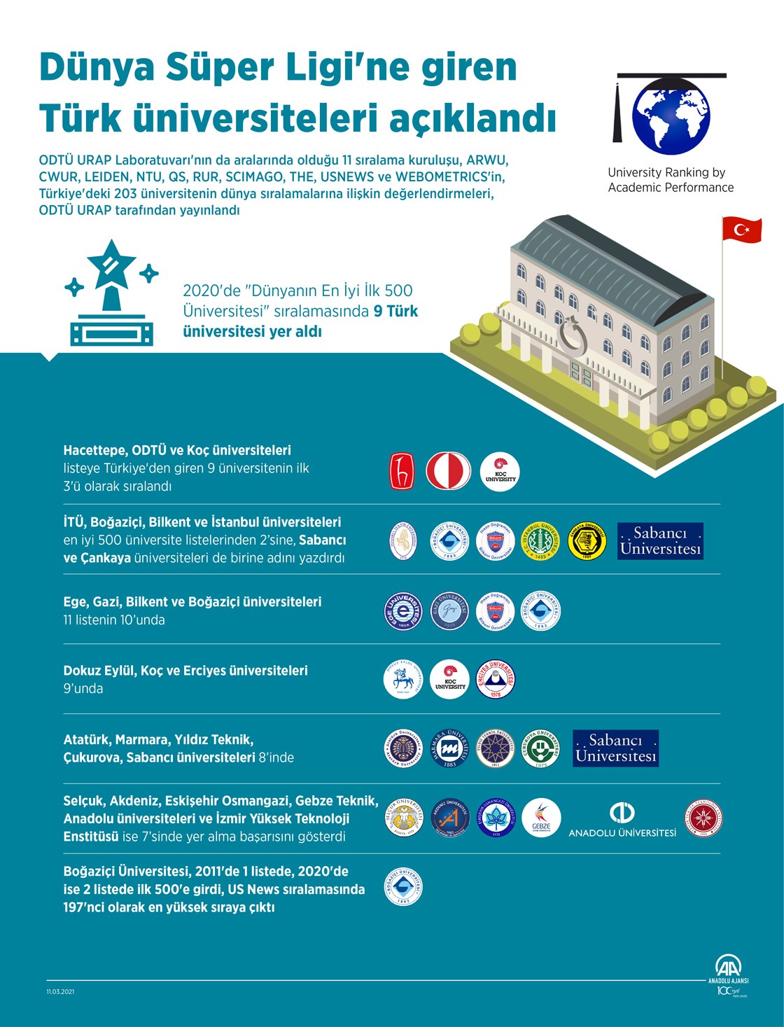 Hacettepe, ODTÜ ve Koç, ODTÜ University Ranking by Academic Performance Laboratuvarı'nca (URAP) açıklanan rapora göre, "Dünyanın En İyi İlk 500 Üniversitesi" listelerinden 3'üne girerek Türkiye'de en yüksek başarıyı gösteren üniversiteler oldu.