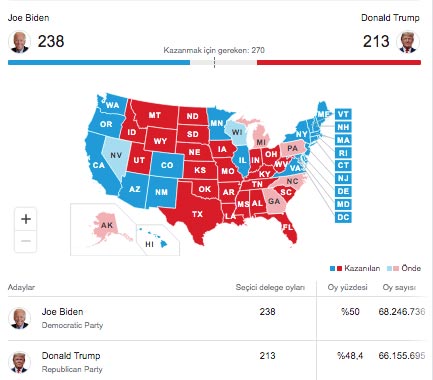 USA election results 2020! U.S. citizens go to the polls today to decide between incumbent President and Republican candidate Donald Trump (74) and Democratic candidate Joe Biden (77). In the two-stage election, the candidate who received 270 votes from the Selection Committee with 538 delegates will be the President of the USA.