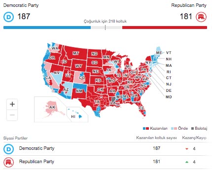 In the House of Representatives, Democrats will now hold 214 seats, while Republicans are expected to win around 182 seats. For the remaining 39 seats, it is stated that the competition between both parties is still continuing.
