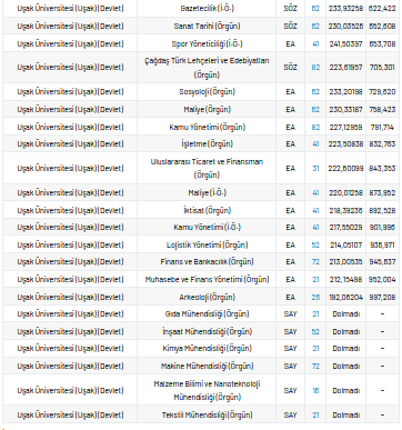Uşak Üniversitesi 2021 taban puanları ve yüzdelik dilimleri nelerdir?