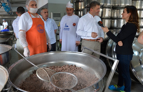 Üsküdar Belediyesi’nin Selimiye tesislerindeki aşevinde yapılan çalışmaları yerinde inceleyen Başkan Hilmi Türkmen, iftar yemekleri hakkında yetkililerden bilgi aldı. Başkan Türkmen, aşçılardan kepçeyi alarak yemekleri karıştırmayı da ihmal etmedi.