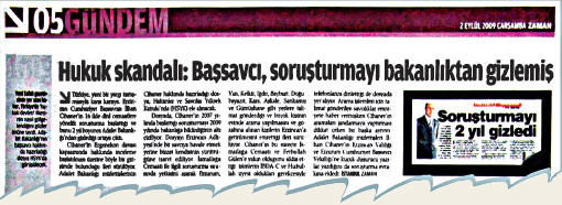 Zaman Gazetesi’nin, 2 Eylül 2009 tarihinde yayımlanan “Hukuk skandalı: Başsavcı, soruşturmayı bakanlıktan gizlemiş” başlıklı haberde şöyle denildi: