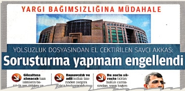 yürüten ve yasadışı olarak kişileri farklı isimlerle dinleten, 25 Aralık’ta Başsavcı Turan Çolakkadı’dan habersiz İstanbul Emniyet Müdürlüğü’ne operasyon emri veren Cumhuriyet Savcısı Muammer Akkaş’ın soruşturmadan alınmasını, “Yargı bağımsızlığına müdahale” manşetiyle eleştirdi.