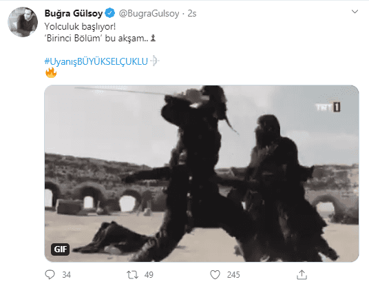 Uyanış: Büyük Selçuklu dizisinin başrol oyuncusu Buğra Gülsoy Twitter hesabından paylaşım yaptı.