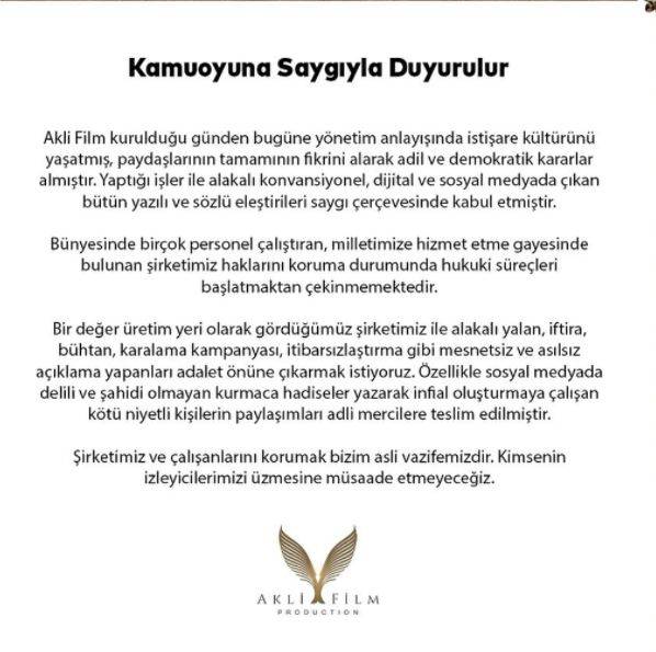 Uyanış Büyük Selçuklu’nun yapımı Akli Film’den yapılan açıklamada şu açıklamalara yer verildi: