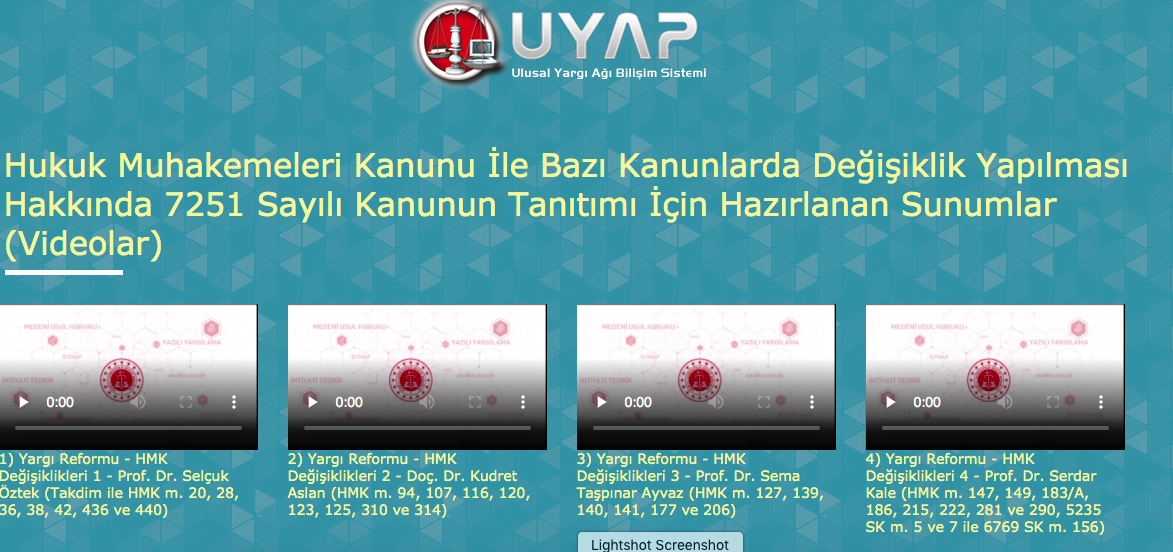 Ayrıca UYAP Avukat sisteminde hukukla ilgili kanun değişikliği hakkında bilgilendirici videolar yayınlanmakta.