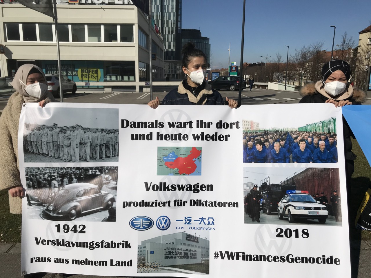 Batı ülkeleri Uygur Türklerine uygulanan soykırım politikası nedeniyle Çin’i kınarken Çin'in Sincan Uygur Özerk bölgesinde üretilen mallara boykot uyguluyor. Alman otomobil devi Volkswagen ise bölgede bir kampın yer aldığı iddia edilen fabrikasında üretimi devam ettiriyor. Firmanın bu tavrı Viyana'da bir grup Uygur Türkü tarafından protesto edildi.