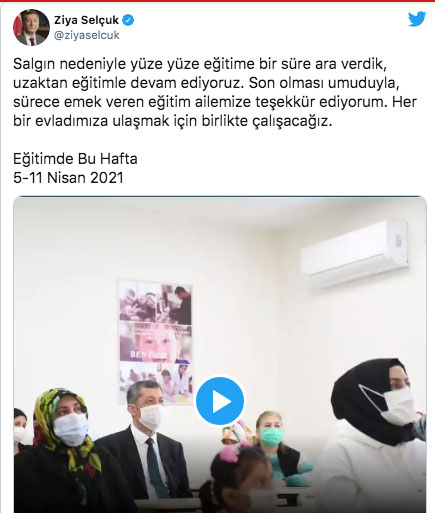 Okullar ne zaman açılacak? Yüz yüze eğitim ne zaman başlar? sorularına da Milli Eğitim Bakanı Ziya Selçuk’tan cevap geldi. Bakan Selçuk Twitter hesabından şunları söyledi: “Salgın nedeniyle yüze yüze eğitime bir süre ara verdik, uzaktan eğitimle devam ediyoruz. Son olması umuduyla, sürece emek veren eğitim ailemize teşekkür ediyorum. Her bir evladımıza ulaşmak için birlikte çalışacağız.”