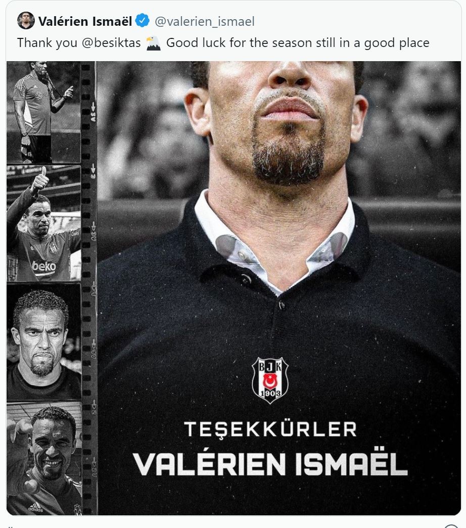 Beşiktaş'tan yapılan açıklamada, "2021-22 sezonunun ikinci yarısından bu yana Futbol A Takımımızın teknik direktörlüğünü yapmakta olan Valérien Ismaël’le yollarımızı ayırmış bulunmaktayız. Valérien Ismaël’e emekleri için teşekkür eder, bundan sonraki kariyerinde başarılar dileriz." denildi.