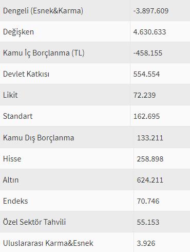 Verilere göre esnek ve karma fonları içeren dengeli fonlardan 3.8 milyar liralık fon çıkışı olduğu görülüyor. Değişken fonlara ise 4.6 milyar liralık giriş rakamlara yansımış durumda. Ancak bu durum Sermaye Piyasası Kurulu’nun (SPK) isim türünü değiştirmesi nedeniyle meydana geldi. SPK fon yöneticisinin inisiyatifinde olan hisse ve diğer riskli varlıkları içeren fonları dengeli kategorisinden değişkene aldığı için bu durum oluştu. Yine de fon yöneticisinin daha söz sahibi olduğu değişken fonlara bir miktar giriş olduğu görülüyor.