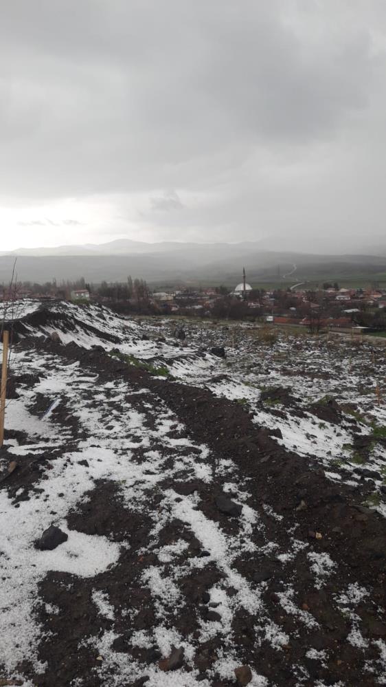 Sivas'ın Gemerek ilçesinde sağanak yağmur etkili olurken, dolu yağan bir köy ise beyaza büründü.