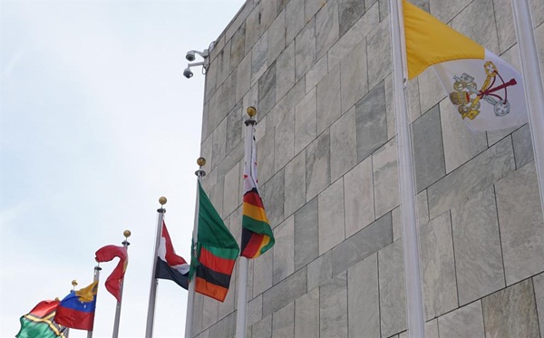 BM Genel Merkezi önündeki 193 üye ülkenin bayrağının yanına Vatikan bayrağı asıldı.
