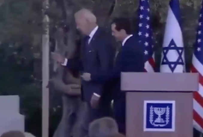 ABD Başkanı Joe Biden, İsrail Cumhurbaşkanı Isaac Herzog ile tokalaştıktan sonra bir de boşlukla selamlaştı.
