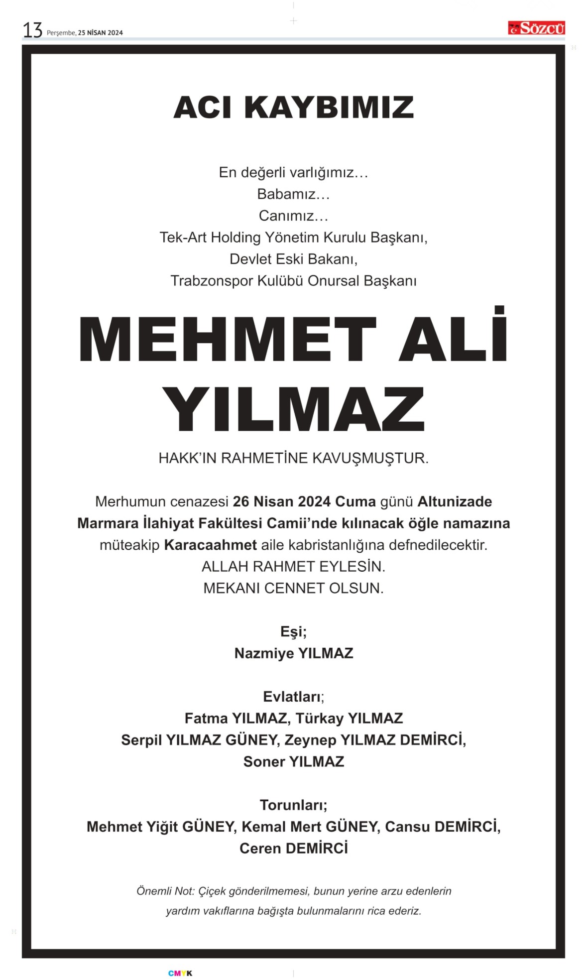 Vay vay vay... Sözcü'de taziyesi yayınlanan adam, kaç trilyonlukmuş!