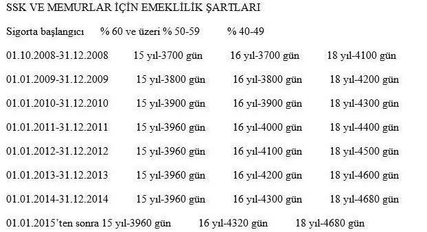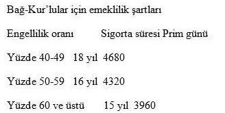 Erken emeklilik için bazı kolaylıklar bulunuyor. Bunlardan birisi malulen emeklilik. Çalışma gücünü sonradan kaybeden ve en az yüzde 60 oranında raporu olanlar malulen emekli olabiliyor. Ayrıca engelliler için de erken emeklilik imkanı var. Engeli bulunanlar en az yüzde 40 vergi indirimi alabilirlerse erken emekli olabiliyor. ‘1984 doğumluyum, 1996 yılında böbreğimin birisi alındı. 2006 yılından beri SSK’lı çalışıyorum. Vergi indiriminden emekliliğe hak kazanabilir miyim?’ Sorusuna Hürriyet yasarı Noyan Doğan şu şekilde cevap veriyor: “Malulen emekli olabilmek için çalışma gücünüzün en az yüzde 60’ını kaybetmeniz gerekiyor. Bunun da SGK Sağlık Kurulunca tespit edilmesi gerekiyor. Tespit sonrası en az 10 yıl çalışılmış ve toplam 1800 gün prim ödenmesi halinde emekli olup, maaş alabilirsiniz. Ancak tek böbrekli olmanız yüzde 60 engelli raporu almak için yeterli değil. Dolayısıyla emekliliğe hak kazanamazsınız.”
