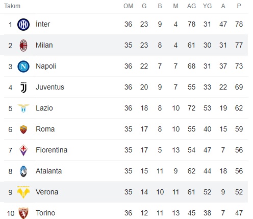 Milan çıktığı 35 maçta 77 puan topladı. Verona ise 52 puana sahip ve 9.sırada yer alıyor.