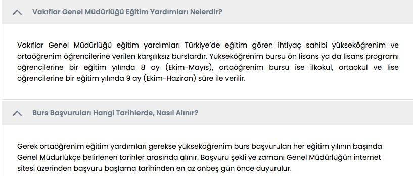 Vakıflar Genel Müdürlüğü eğitim yardımları Türkiye'de eğitim gören ihtiyaç sahibi yükseköğrenim ve ortaöğrenim öğrencilerine verilen karşılıksız burslardır.