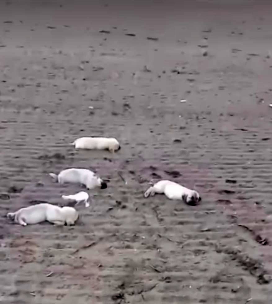 Arazi içerisinde yavru köpeklerden 4’ü ölü halde bulunurken, sağ kalan bir yavrunun ise ölen annesinin sütünü emmeye çalıştığı görüntüler yürekleri sızlattı.