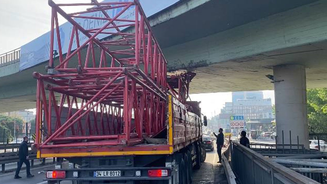 Vinç yüklü TIR köprüye sıkıştı! Bakırköy D-100’de korku dolu anlar
