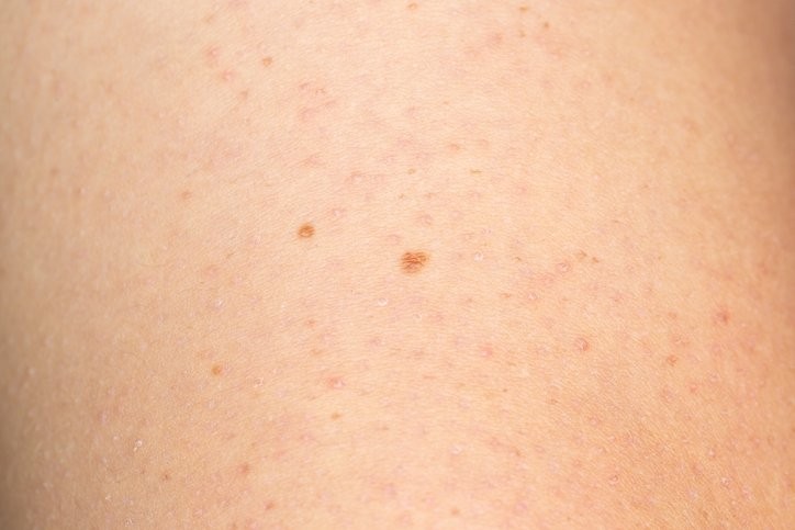 Keratosis pilaris, üst kolların, uylukların veya kalçaların arkasında görülebilen "tavuk derisi görünümü" olarak tanımlanmıştır. Julson, "C vitamini eksikliğinin neden olduğu keratosis pilaris, tipik olarak üç ila beş aylık yetersiz alımdan sonra ortaya çıkar ve C vitaminin yerine konması ile düzelir" diye ekledi.