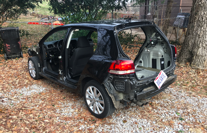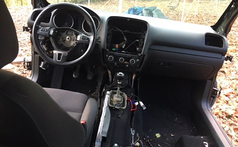 Aşağıdaki fotoğrafta da gördüğümüz üzere VW Golf sahibi bir kişi, aracın tamponunu, kaputunu, kapılarını, koltuklarını, multimedyasını hatta vites topuzundaki deriyi bile sökmüş.