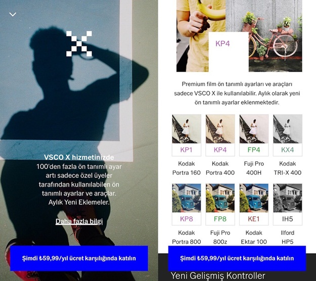 Eğer VSCO X hizmetini kullanmak istiyorsanız, yıllık 59,99 TL'yi gözden çıkarmanız gerekiyor. VSCO X hizmetinin yanında güncelleme ile VSCO'nun GIF halinde fotoğraf çekmenizi sağlayan DSCO uygulaması da VSCO'ya entegre edildi. Muhtemelen önümüzdeki günlerde DSCO uygulaması App Store'dan kaldırılacaktır.