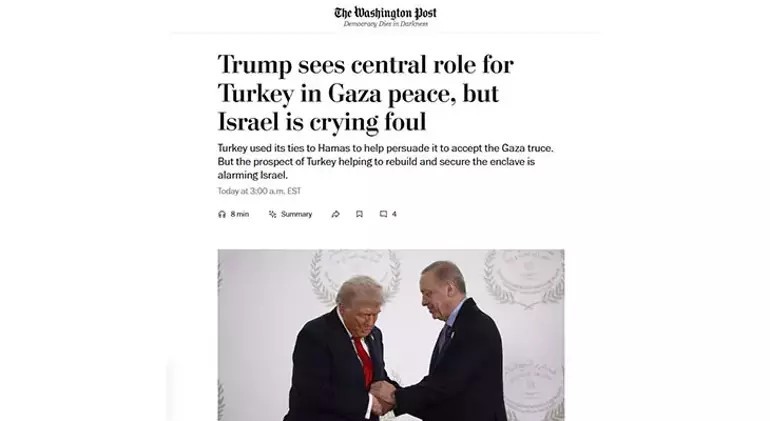 ABD’nin önde gelen gazetelerinden Washington Post’un Türkiye’nin son dönemde artan rolünü ve etkisini mercek altına alan kapsamlı bir haber yayımladı. Haberde, Ankara’nın Hamas’la kurduğu temasların, ateşkesin sağlanmasında kritik bir öneme sahip olduğu ifade edilirken “Türkiye’nin Gazze’nin yeniden inşası ve güvenliğinin sağlanmasında aktif rol alması ihtimali, İsrail’de alarm zillerini çaldı” denildi.