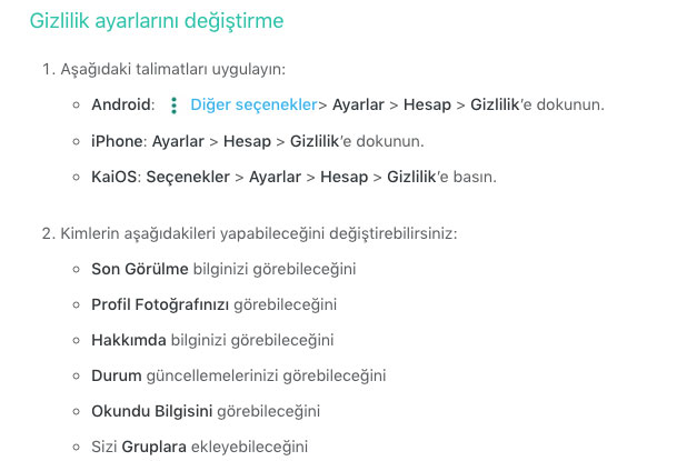 WhatsApp gizlilik ayarları