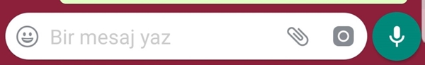 Öncelikle konumumuzu paylaşmak istediğimiz kişinin ya da grubun sohbet ekranına aşağıdaki gibi geliyoruz. Ardından mesaj yazma alanının sağ tarafında bulunan ataş simgesine dokunuyoruz.