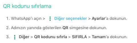 Arkadaşlarınız ve aileniz WhatsApp QR kodunuzu tarayarak sizi WhatsApp’ta kişi olarak ekleyebilirler. QR kodunuz, kodu sıfırlamadığınız ya da WhatsApp hesabınızı silmediğiniz sürece geçerliliğini korur. WhatsApp QR kodunuzu sadece güvendiğiniz kişilerle paylaşmaya özen gösterin. Unutulmamalıdır ki kişilerin WhatsApp QR kodunuzu başka kişilere iletmesi ve bu kişilerin QR kodunuzu tarayarak sizi kişi listelerine eklemeleri söz konusudur.