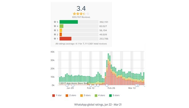 Dünyada en çok kullanılan mesajlaşma platformu WhatApp'ın, son getirdiği yenilik kullanıcılarının büyük tepkisine neden oldu. Söz konusu olay üzerine uygulama mağazalarındaki puanında düşüş yaşayan mesajlaşma platformu, sahte hesaplarla puanını düzeltmeye kalkıştı.