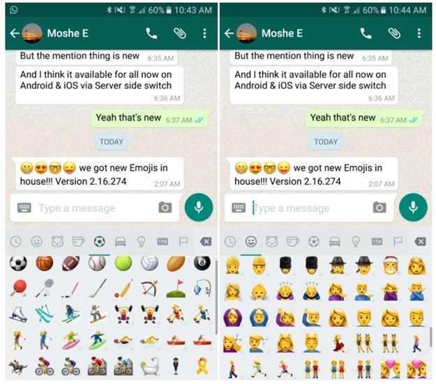 Android Police sitesinde yer alan habere göre Apple’ın iOS 10 sürümüne dahil ettiği birçok emoji artık WhatsApp beta Android uygulamasında kullanılabilir durumda.