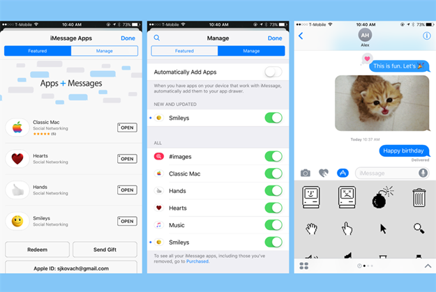 Yeni iMessage'da artık ek uygulama ekleyebileceğiz. Fotoğraftan da gördüğümüz üzere iMessage'a özel uygulamalar yayınlanacak. Bu şekilde mesajlaşma uygulamasına çok daha farklı içerikler ekleyebileceğiz.