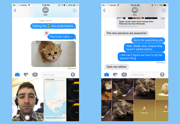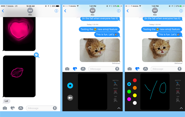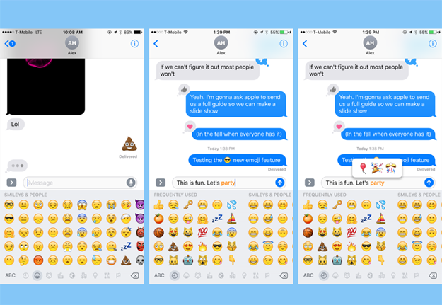 iOS 10 ile beraber iMessage'da emojiler 3 kat daha büyük olacak. Ayrıca emoji içeren bir kelime yazdığınızda o kelime sarı renge dönüşecek. Böylece o kelimenin yerine emoji ekleyebileceksiniz. Yani örnek vermek gerekirse 'parti' yazdığınızda karşınıza partiyle alakalı emojiler gelecek.