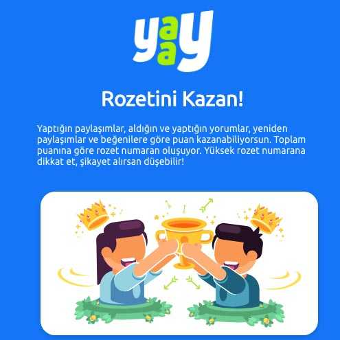 Yaay’da kullanıcıların dikkatini çeken bir diğer özellik ise rozet ve puan uygulaması. Yaay uygulamasında yer alan rozet ve puan sistemi sayesinde kullanıcılara ek faydalar sunduğu görülmekte.