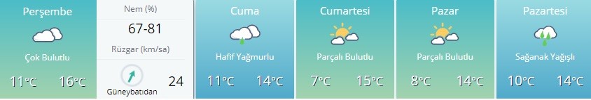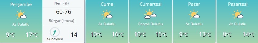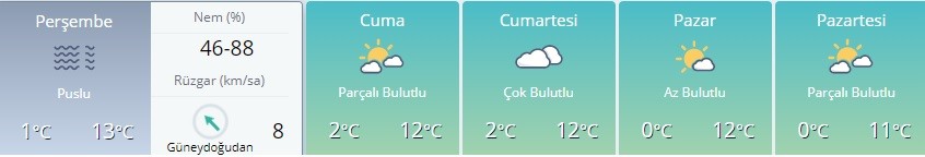 Rüzgarın genellikle güney ve güneybatı, Doğu Anadolu'nun doğusu ve Güneydoğu Anadolu'da kuzeyli yönlerden hafif, ara sıra orta kuvvette, Marmara'nın batısı ile Kuzey Ege kıyılarında güneyli yönlerden kuvvetli esmesi bekleniyor.