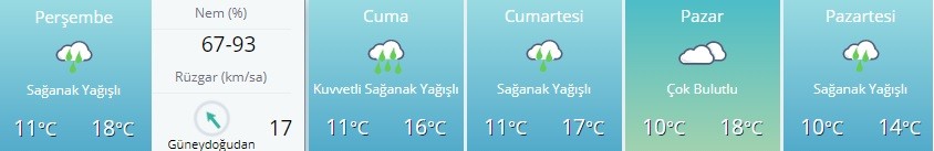 Yağışların, öğle saatlerinden sonra Muğla kıyılarında, akşam saatlerinden sonra İzmir çevreleri ile Balıkesir'in batı ve Çanakkale'nin güneyinde kuvvetli olması bekleniyor.