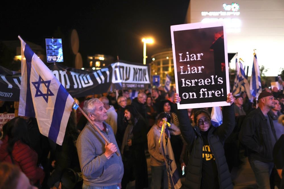 İsrail bayrakları ve davullarla eyleme katılan İsrailliler, Binyamin Netanyahu’yu ülkeyi kötü yönetmekle suçlayarak, acil seçim çağrısı yaptı. Netanyahu hükümetini protesto eden kalabalığın taşıdığı pankartlarda ve giydiği tişörtlerde Netanyahu’nun fotoğrafı yer alırken, fotoğrafın üzerindeki kırmızı renkte el ve “suçlu”, “sorumlu” yazıları dikkat çekti.