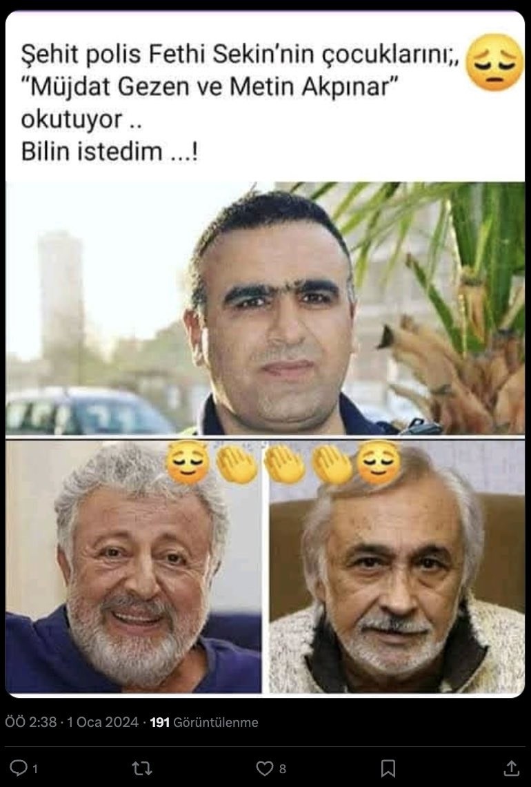 “Şehit polis Fethi Sekin'in çocuklarının eğitim masrafları sanatçı Metin Akpınar ve Müjdat Gezen tarafından karşılanıyor” iddiası yalan.