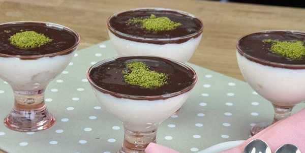 Ardından sosu muhallebinin üzerine dökün.