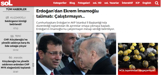 AK Parti İstanbul Milletvekili Ahmet Hamdi Çamlı, Cumhurbaşkanı Recep Tayyip Erdoğan liderliğinde basına kapalı olarak düzenlenen toplantıda 'Erdoğan, İmamoğlu'nu çalıştırmayın talimatı verdi.' şeklinde haberler yapan yayın organlarını yalanladı. Çamlı, yaptığı açıklamada, "Sayın Cumhurbaşkanı Erdoğan, 'Ekrem İmamoğlu'nu çalıştırmayın' diye bir ifade kullanmadı. Tam aksine yaşanan bu siyasi çatışma ortamında millete hizmetin aksamaması hususunda talimatlar verdi." dedi.