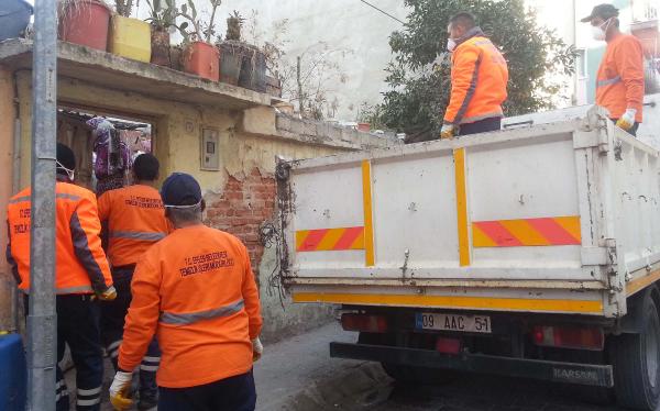 Aydın'daki evinde tek başına yaşayan 56 yaşındaki Mahiye P.'nin evinde çalışma yapan ekipler, evden 3 kamyon çöp çıkarttı.