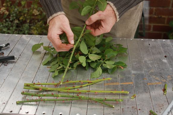 Gül sapının alt kısmını dikenlerden temizliyoruz.
