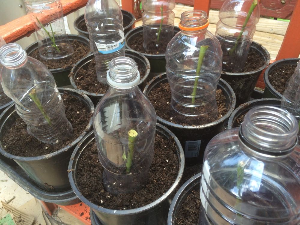 Patatesleri toprağa iyice gömdükten sonra bir plastik şişeyi gül dalının üzerine yerleştiriyoruz.