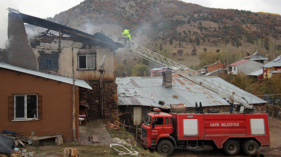 Sivas’ın Hafik ilçesine 33 kilometre mesafedeki Esenli köyünde akşam saatlerinde Veli Kabataş'a ait evde henüz bilinmeyen bir nedenle yangın çıktı.
