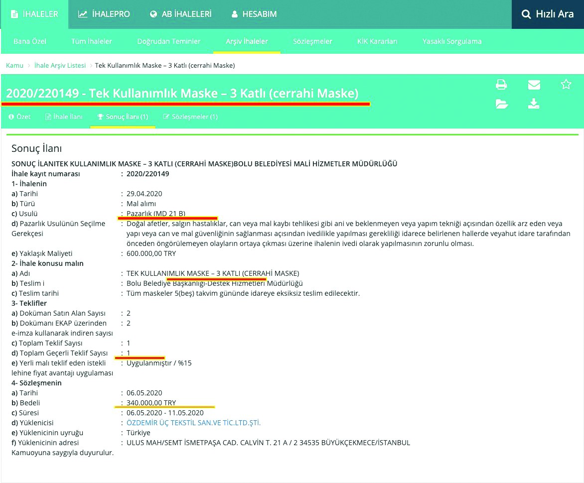 CHP’li İstanbul Büyükşehir Belediye Başkanı Ekrem İmamoğlu’nun, CHP’li Hülya Sarıgöl’ün sahip olduğu Işık Ambalaj’dan maskeyi 3 liraya almasının yankıları sürerken; CHP’li İzmir Büyükşehir ve Bolu belediyelerinin de ‘Maske İhalesi’ adı altında Halk TV’ye para akıttığı belirlendi.