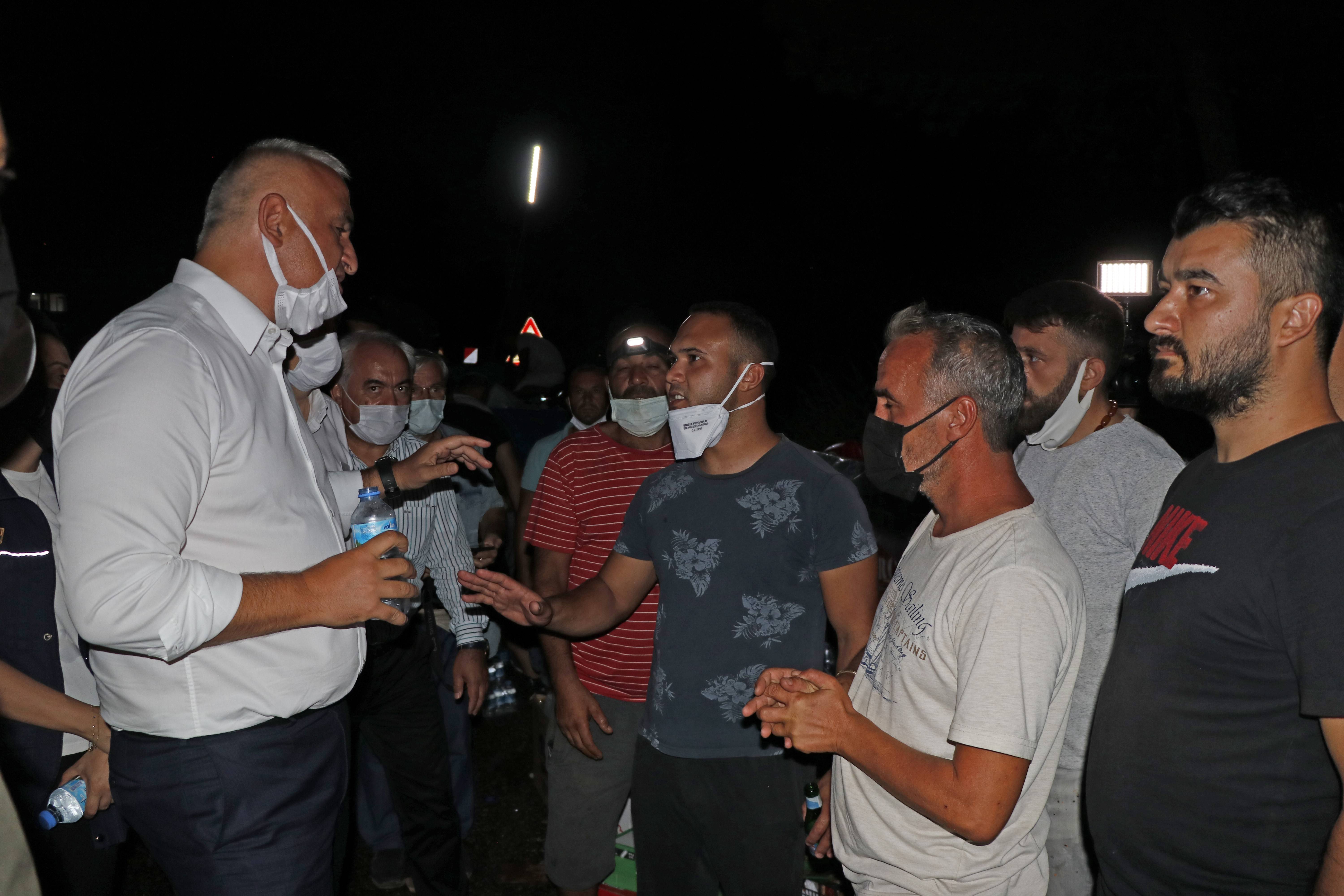 "Bu Türkiye'ye has bir ortam da değil. Avrupa kıyı kesimlerinde de yangınlar var. Ülkemizde de çok kuru bir hava ve rüzgar var. Bu akşam itibarıyla rüzgar lehimize. Böyle devam ederse ekiplerimizle yangını boğup, sabah da uçak, helikopter ve ilave ekiplerin gelmesiyle yangını kontrol altına alıp, soğutacağımızı düşünüyoruz. Bu sadece ekiplerimizin çalışmasıyla olacak bir şey değil bize güç veren halkımız var. Bıraksak onlar da yangın bölgesine gitmek istiyor. Hiç gerek yok.