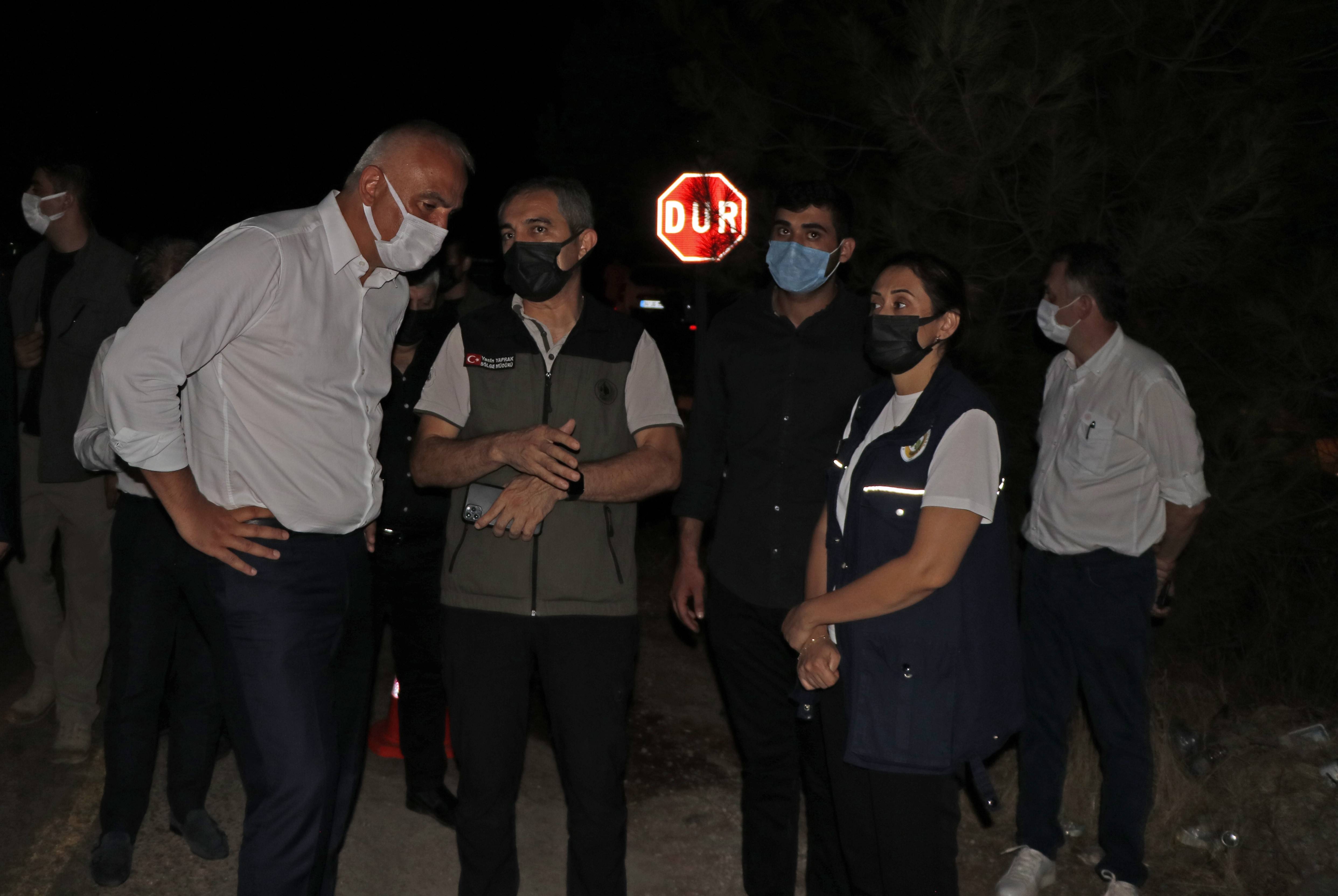 Başta Orman Genel Müdürlüğü ekipleri olmak üzere devletin tüm kurumlarının özveriyle bölgede olduğunu vurgulayan Ersoy, "Askeri üsten de bugün çok büyük takviye geldi. TOMA’lar da dahil yangın bölgesinde yangını kontrol altına almaya çalışıyor. Şu an iki noktada sıkıntımız var. Asparan ve Turunç bölgesi. Ekiplerimiz 24 saat aralıksız çalışıyor. Kontrol altında tutup sabah günün doğmasıyla birlikte amfibi uçak ve helikopterlerimizle birlikte inşallah rüzgar da yardım edecek. Yangını boğmaya çalışacağız." ifadelerini kullandı.