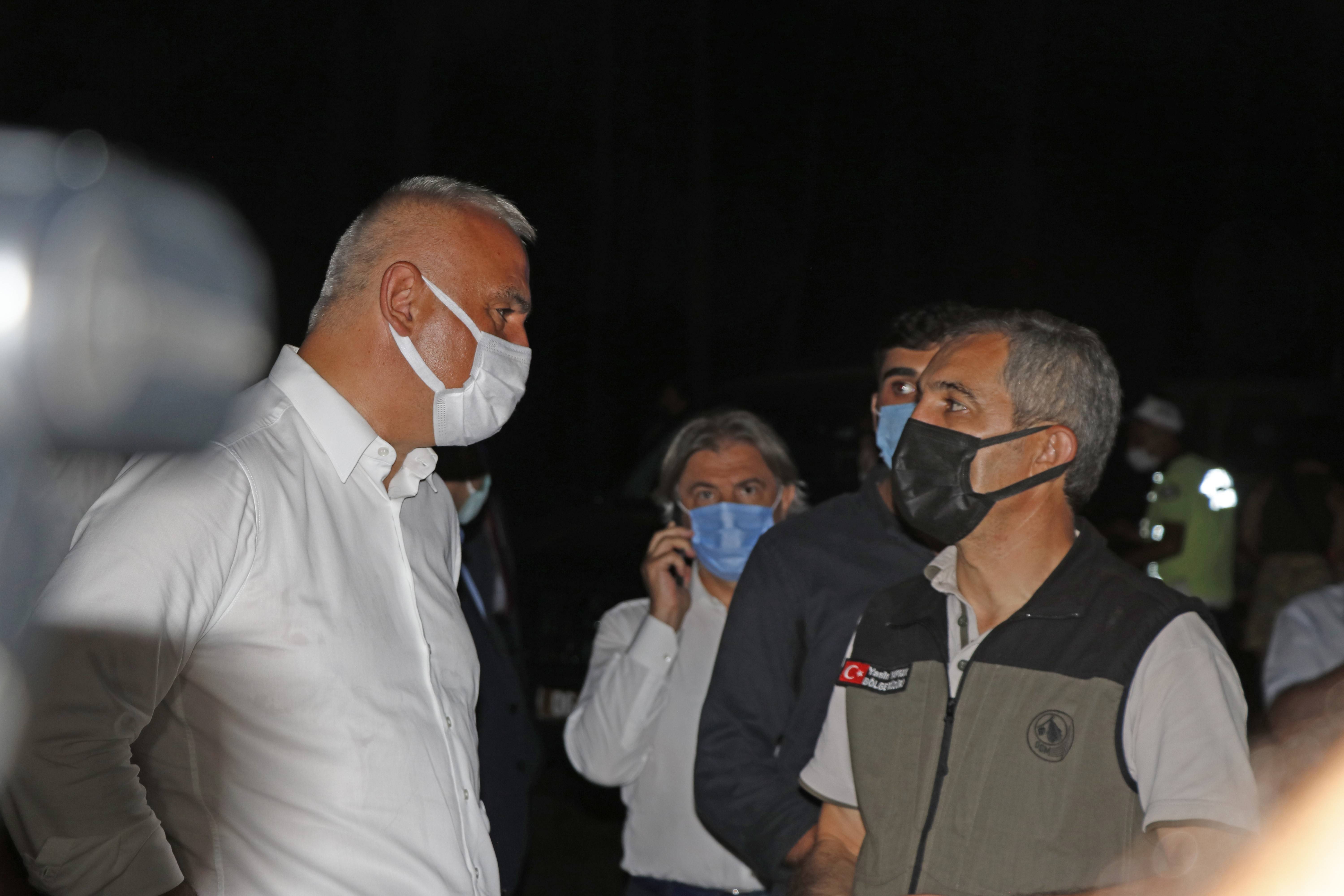 Muğla'nın Marmaris ilçesinde yangın bölgesinde incelemelerde bulunan Kültür ve Turizm Bakanı Mehmet Nuri Ersoy, "Bu akşam itibarıyla rüzgar lehimize. Böyle devam ederse ekiplerimizle yangını boğup, sabah da uçak, helikopter ve ilave ekiplerin gelmesiyle yangını kontrol altına alıp, soğutacağımızı düşünüyoruz." dedi.